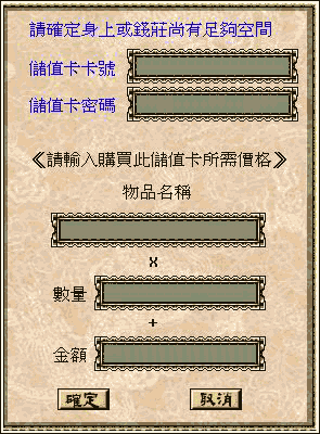 F. 为保障玩家,储值卡片在〝未确定交易成功前〞,请妥善保管,以维护自身权益。